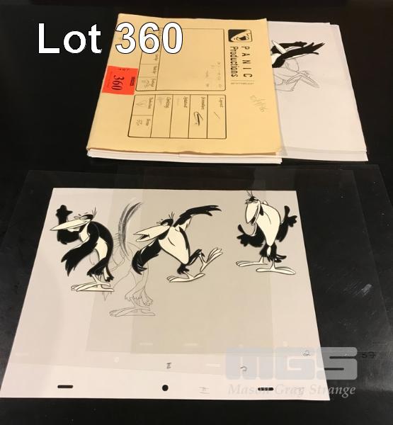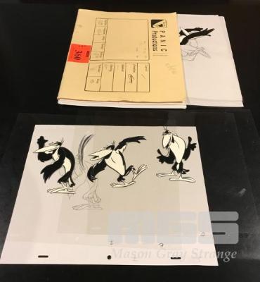 COLLECTION OF TRADITIONAL HAND PAINTED ANIMATION CELS. SIP N' SAVE MAGPIE. GREAT CHARACTER. MANY CELS INCLUDE ORIGINAL HAND DRAWN PAPER CEL