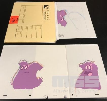 TRADITIONAL HAND PAINTED CEL ANIMATION SEQUENCE FROM A WENDY'S TV COMMERCIAL. MANY INCLUDE PENCIL DRAWINGS OF CEL. IT REPRESENTS A SMALL DROP OF SMOOTHIE RUNNING AWAY FROM A STRAW