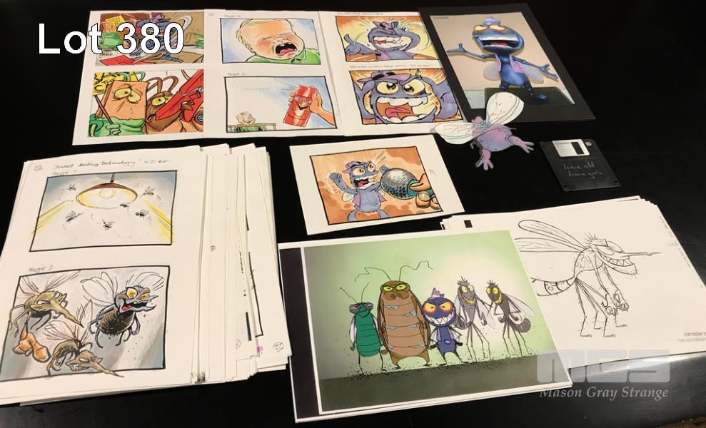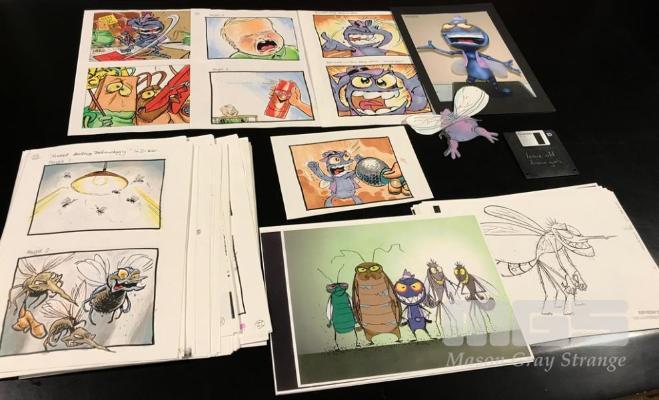 LOUIE THE FLY ART COLLECTION FROM THE ARCHIVES. CONCEPT DRAWINGS, SCALE ILLUSTRATIONS AND SAMPLE STORYBOARD FRAMES