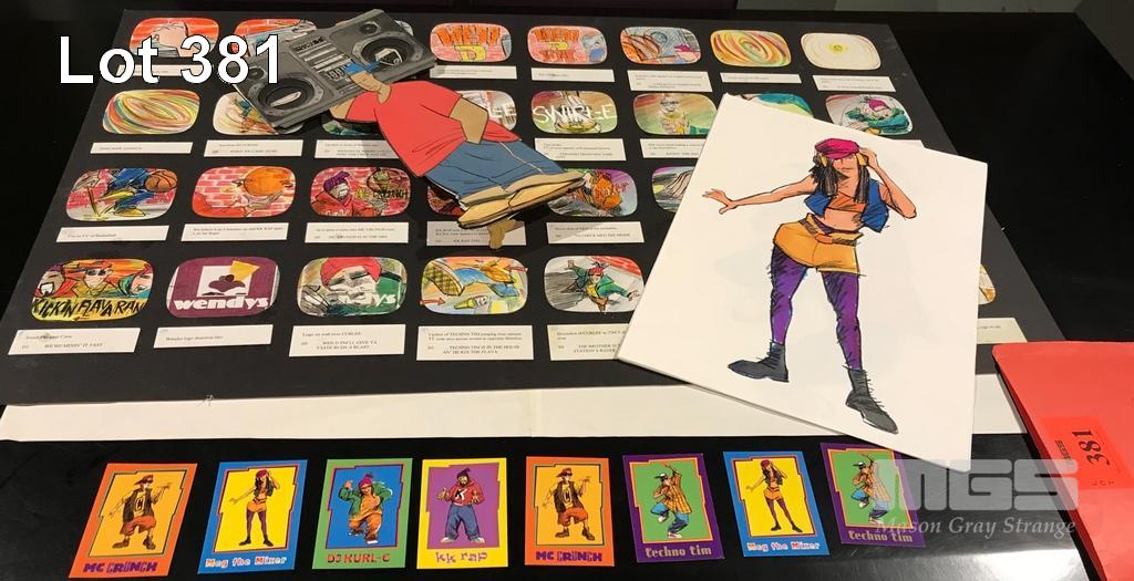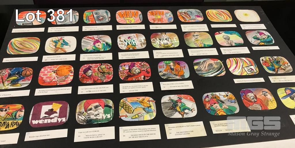 WENDY'S STORYBOARD WITH CHARACTER FROM THE TV COMMERCIAL AND CHARACTER DESIGN. PLUS COLLECTOR CARDS. (NB: BONUS! THE WINNING BIDDER WILL RECEIVE A LINK TO THE TV COMMERCIAL.)