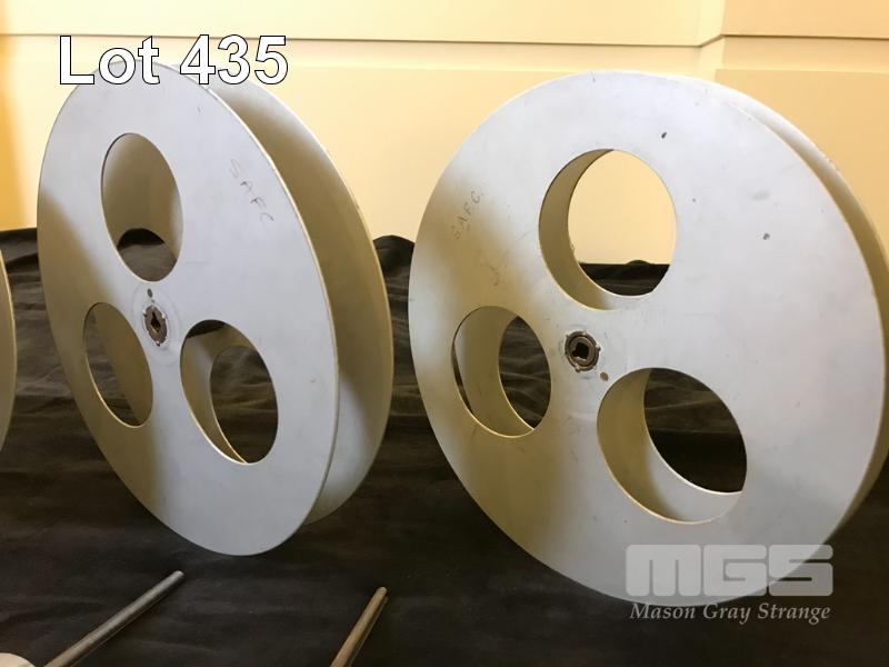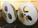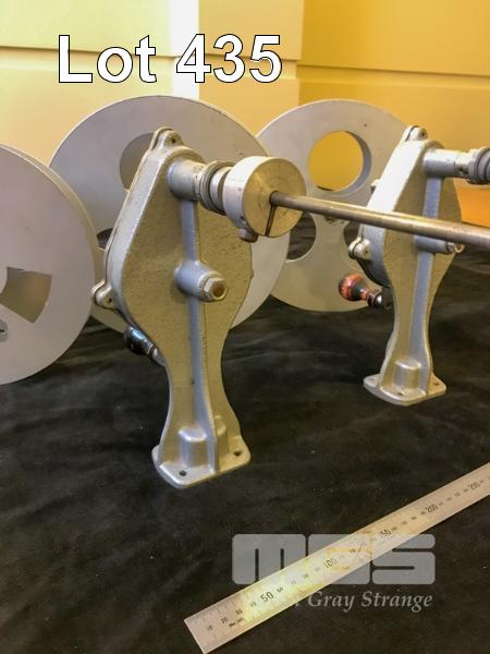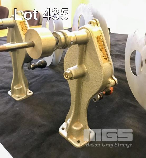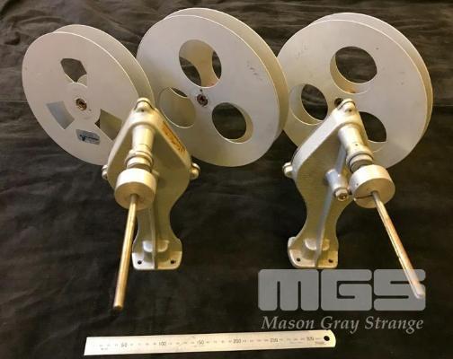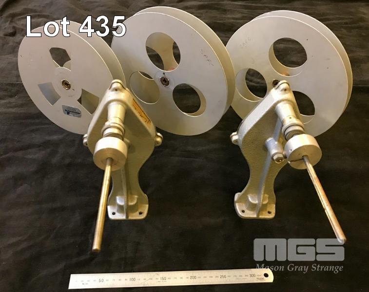 PAIR OF VINTAGE FILM WINDING ARMS AND 35MM SPLIT REELS WITH CORES