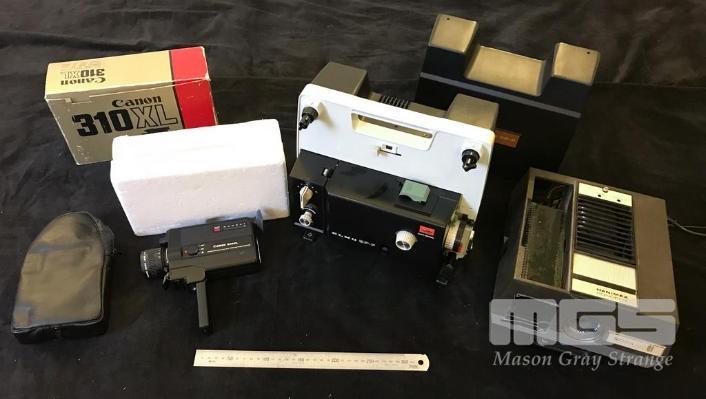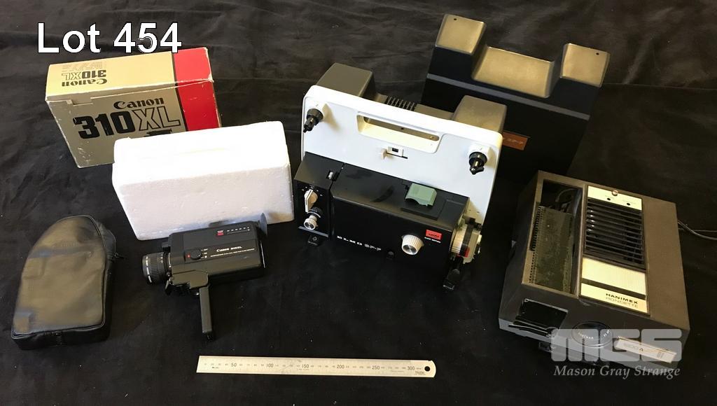 RETRO ELMO 8MM PROJECTOR. CANON 8MM MOVIE CAMERA. HANIMEX 35MM SLIDE PROJECTOR