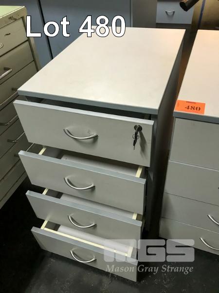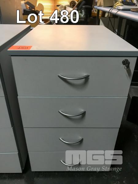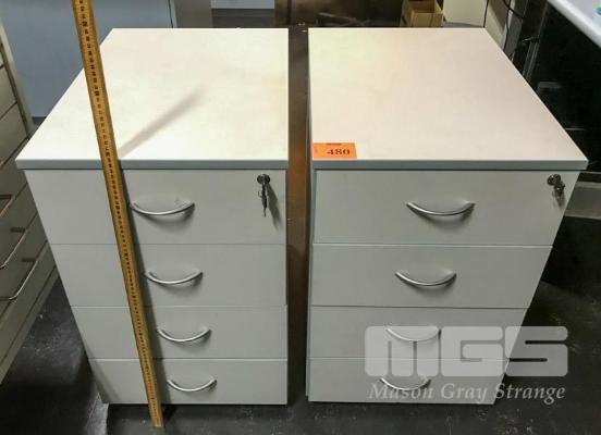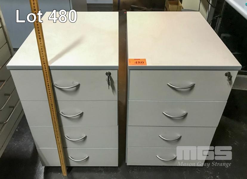 2 X LOCKABLE UNDERDESK FILING DRAWER UNITS, 4 DRAWER, GREY LAMINATE
