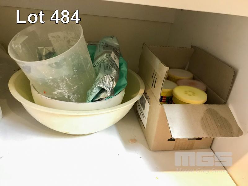 CONTENTS OF CUPBOARD. MODELLING CLAY. 2 FULL BOXES OF ALGINATE MOULDING MATERIAL. ASSORTED BOWLS