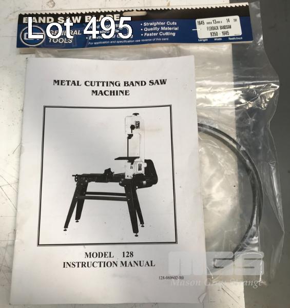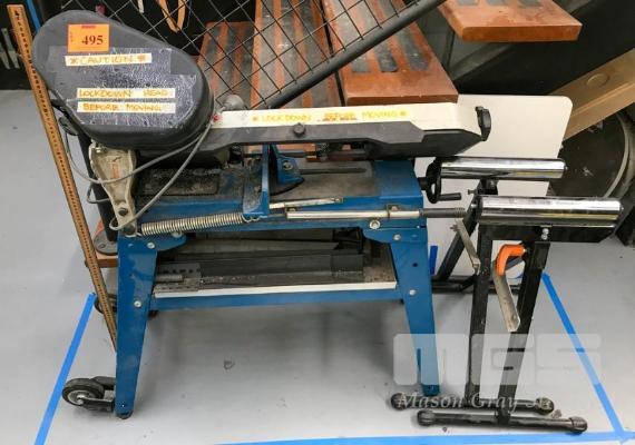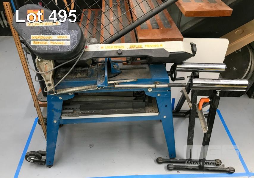 HAFCO METAL CUTTING BANDSAW WITH SPARE BLADE. LOT INCLUDES 2 ADJUSTABLE SUPPORTS