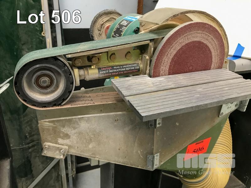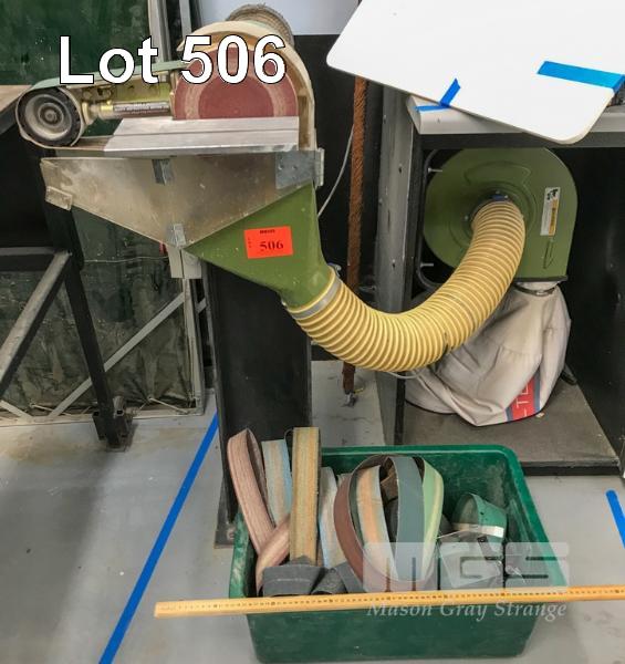 ABBOTT AND ASHBY 8 IN. INDUSTRIAL BENCH GRINDER WITH MULTI-TOOL SANDER, DUST EXTRACTOR AND PARTS. (THIS ITEM TO BE COLLECTED MONDAY 1st MARCH)