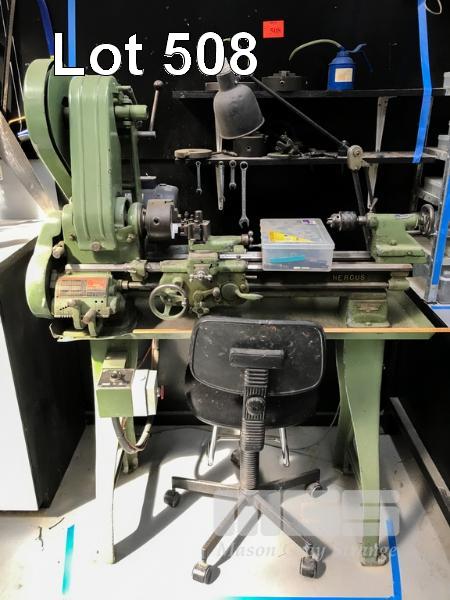 HERCUS PRECISION LATHE WITH QUICK RELEASE TOOL POST, 5 IN 3 JAW CHUCK 6IN. 4 JAW CHUCK AND TOOLS.