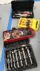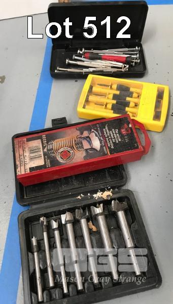 STANLEY SCREWDRIVER SET. ASSORTED DRILL BITS, COUNTERSINKS, FILES AND JIGSAW BLADES