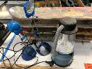 4 X SKATE BOARDS / DECKS WITH TRUCKS. 2x DESK LAMPS AND 1 CAMPING LAMP
