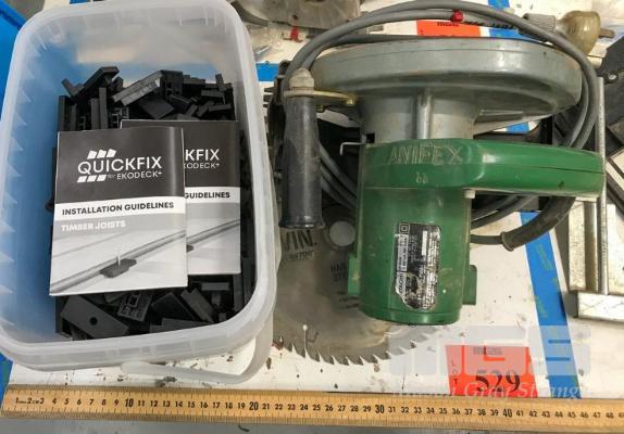 HITACHI 185MM CIRCULAR SAW, FC7 WITH BOX OF TIMBER DECKING JOINTS