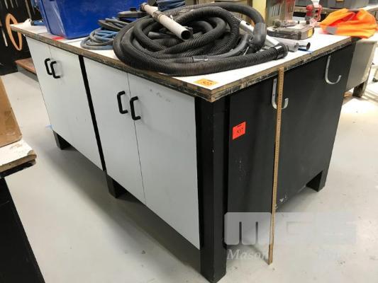 HEAVY BESPOKE WORK BENCH WITH BUILT IN CUPBOARDS. L 202 CMS X W 120CMS X H 120CMS. (THIS ITEM TO BE COLLECTED TUESDAY 2nd MARCH)