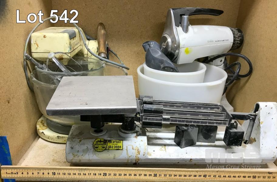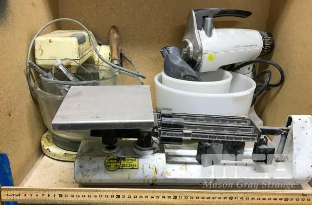 USED IN FOAM LATEX MODEL PRODUCTION. 2 X SUNBEAM MIXMASTERS AND A BEAM SCALE