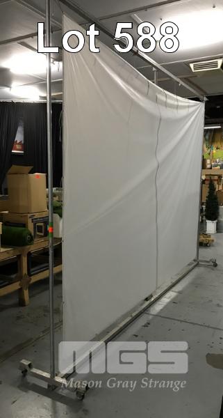 LIGHTING SCRIM ON LIGHTWEIGHT ROLLING MOBILE FRAME. CAN ALSO BE USED FOR GREENSCREENS. (H 3.5 METRES X W 5 METRES.)