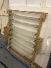 LARGE "EGG CRATE" LIGHT DIFFUSER IN WOODEN FRAME. ASSORTED POLYSTYRENE SHEETING. ACRYLIC LOUVRED WINDOW FRAME. (USED AS LIGHTING GOBO.)