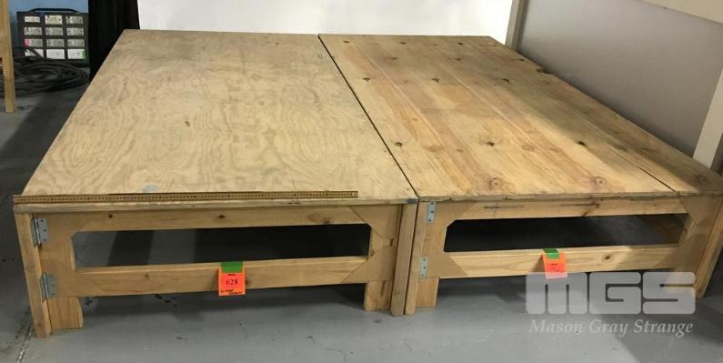 2 X SHORT FOLDING WOODEN ROSTRUM TABLES. (2.4 X 1.2 X .47) (THIS ITEM TO BE COLLECTED TUESDAY 2nd MARCH)