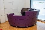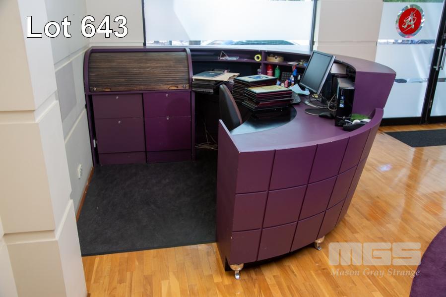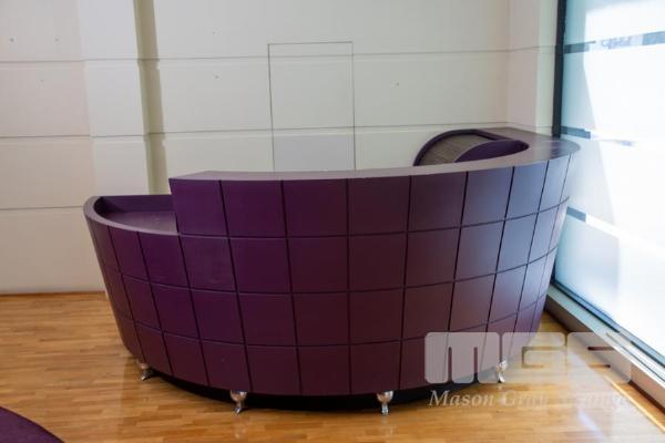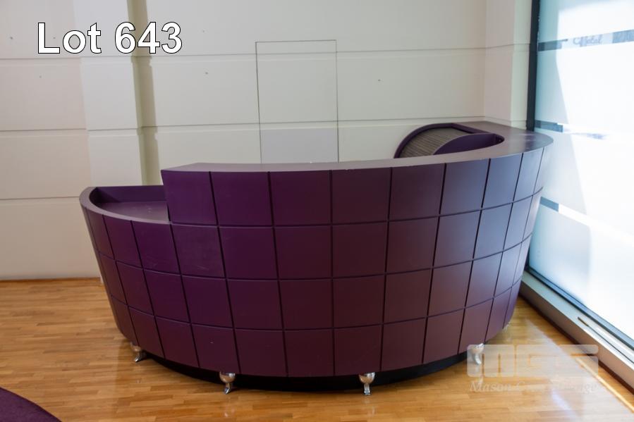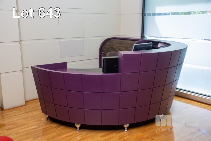 BESPOKE WRAP-AROUND "PINEAPPLE" DESIGN RECEPTION DESK. WITH CHAIR. (APPROX. 2.75 X 1.3 X 1.1M) (THIS ITEM TO BE COLLECTED TUESDAY 2nd MARCH)