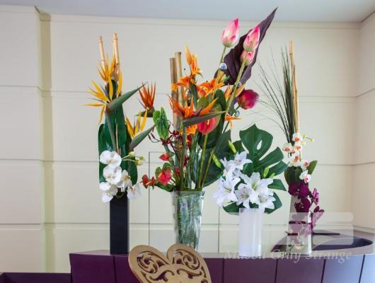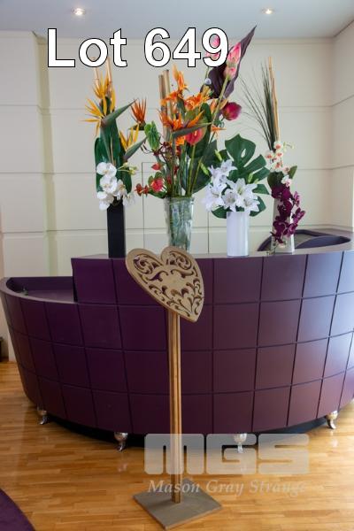 FOYER VASES OF FLOWERS. LOT INCLUDES HEART SHAPED LECTERN. LECTERN USED IN A "COURTESY LION" TV COMMERCIAL FOR SINGAPORE. (NB: BONUS! THE WINNING BIDDER WILL ALSO RECEIVE A LINK TO THE TV COMMERCIAL.)