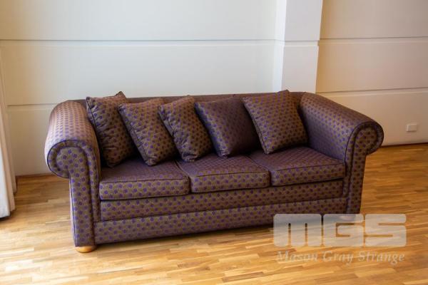 BEAUTIFUL BESPOKE BOARDROOM SOFA WITH 5 MATCHING CUSHIONS. (THIS ITEM TO BE COLLECTED TUESDAY 2nd MARCH)