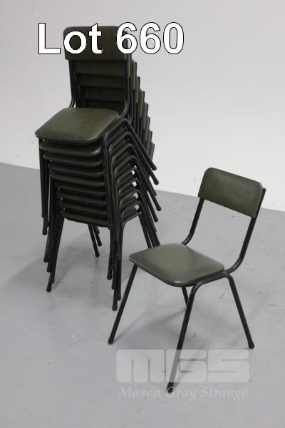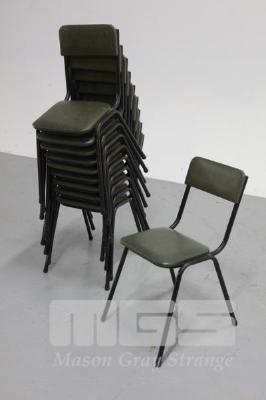 10 RETRO GREEN AND METAL STACKABLE CHAIRS