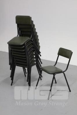 10 RETRO GREEN AND METAL STACKABLE CHAIRS