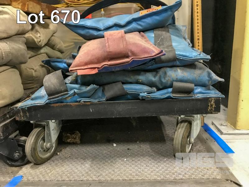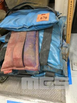 13 X SHOT BAGS ON METAL TROLLEY WITH WHEELS