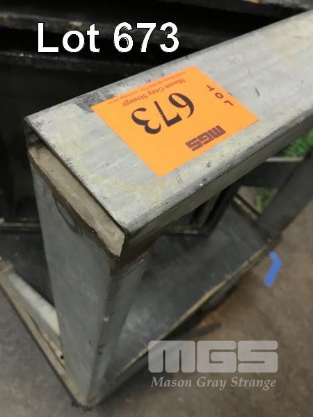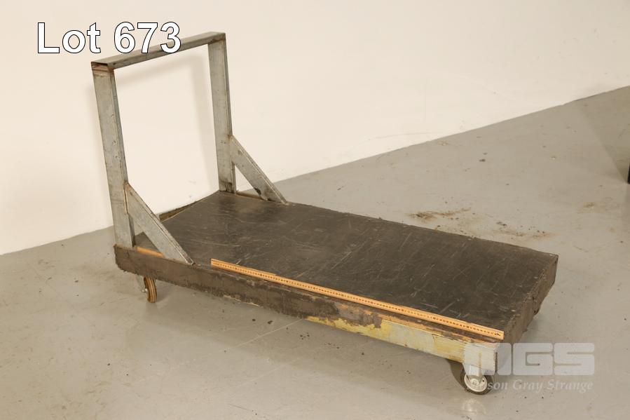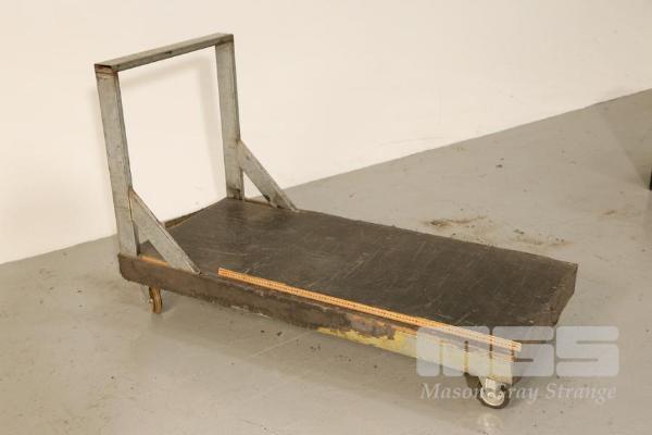 HEAVY INDUSTRIAL FLATBED TROLLEY WITH TWO FIXED WHEELS AND TWO SWIVELLING. 1420MM L X 520MM W X 860MM H