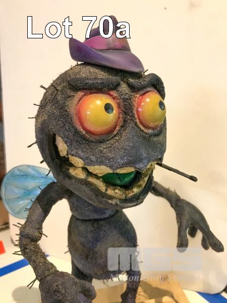 LOUIE THE FLY: VERY RARE: THIS WAS THE PITCH MODEL WE USED WHEN FIRST TURNING LOUIE THE FLY INTO A 3D STOP MOTION PUPPET. RENDERED IN PAINTED CLAY, THIS IS THE "DARK SIDE" VERSION OF LOUIE WHICH WAS ULTIMATELY REJECTED IN FAVOUR OF A LESS EVIL VERSION (NB: BONUS! THE WINNING BIDDER WILL RECEIVE A LINK TO THE TV COMMERCIAL.) NB: NOT TOYS