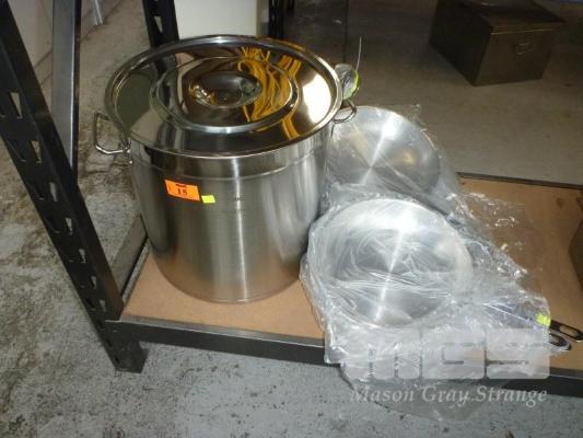 STAINLESS STEEL STOCK POT, 40cm & 10 x FRY PANS, 30cm