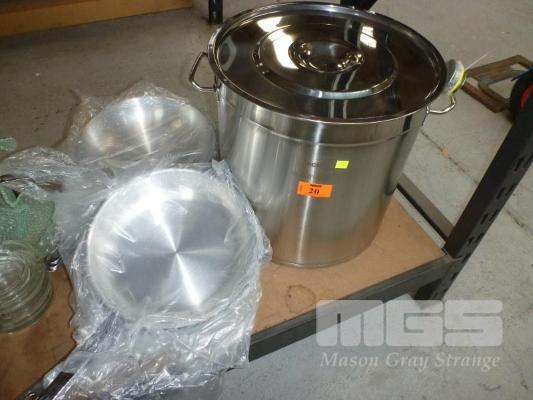 STAINLESS STEEL STOCK POT, 40cm & 10 x FRY PANS, 30cm