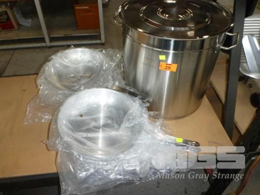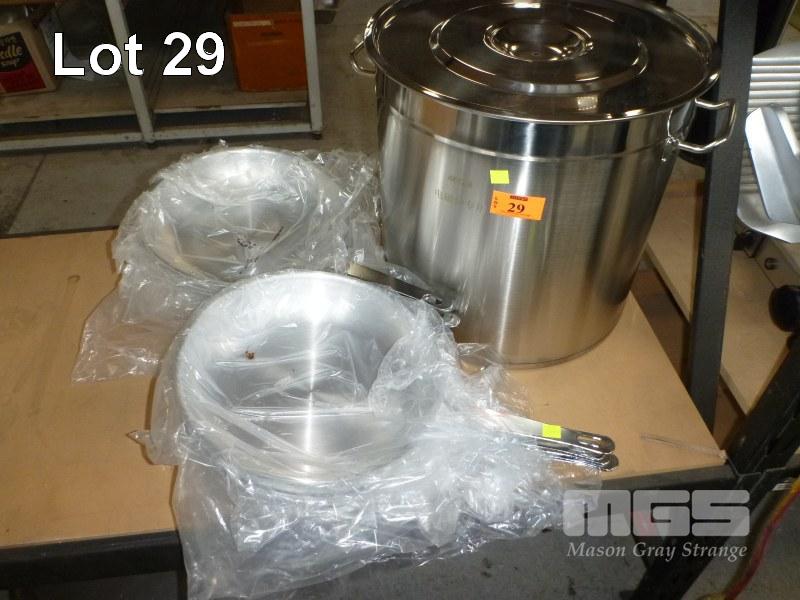 STAINLESS STEEL STOCK POT, 40cm & 10 x FRY PANS, 30cm