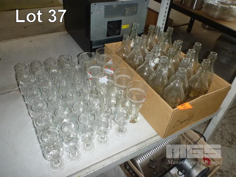 20 x WATER BOTTLES & 36 x ASSORTED BEER GLASSES
