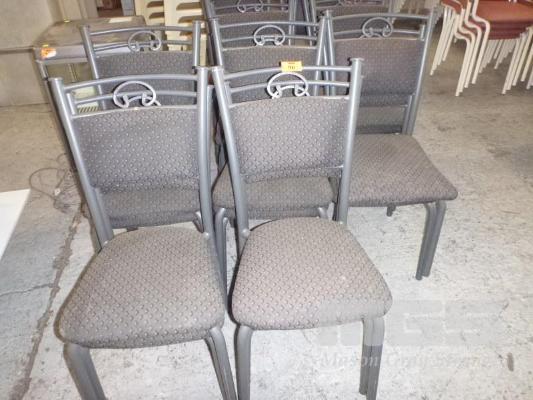 18 x RESTAURANT CHAIRS. GREY FABRIC, TUBULAR FRAME