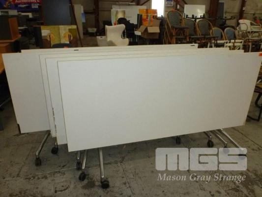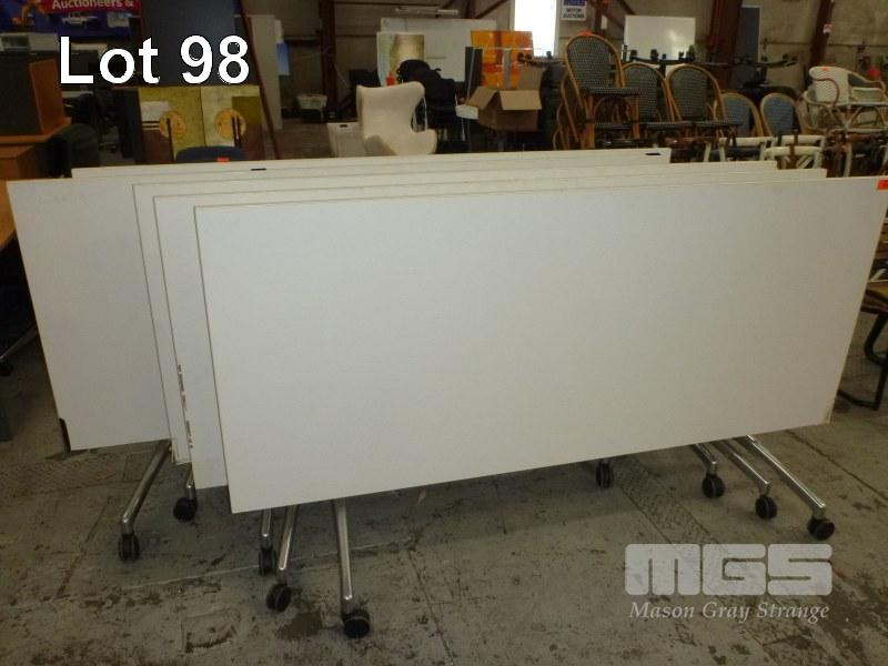 5 x MOBILE FOLD DOWN TABLES, 210 x 90cm, GREY LAMINATE,CHROME FRAME