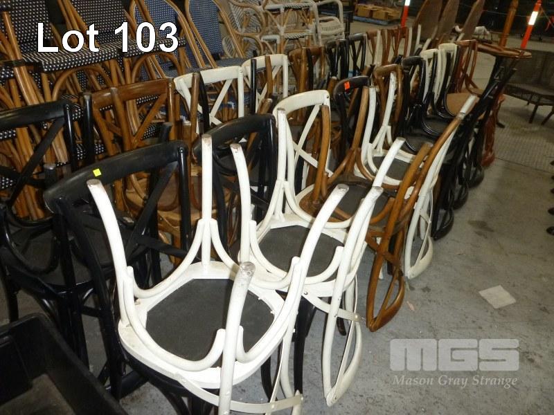 34 x ASSORTED BENTWOOD STYLE CAFE CHAIRS, ASSORTED COLOURS (SOME DAMAGE)