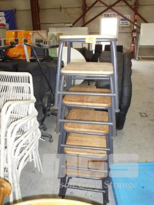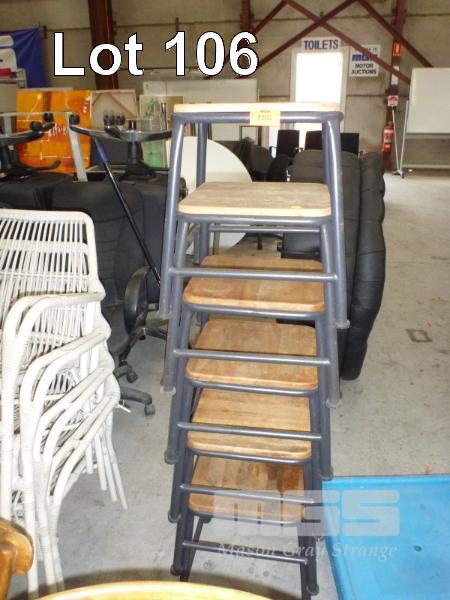 5 x LOWLINE STOOLS, TIMBER SEAT, STEEL FRAME