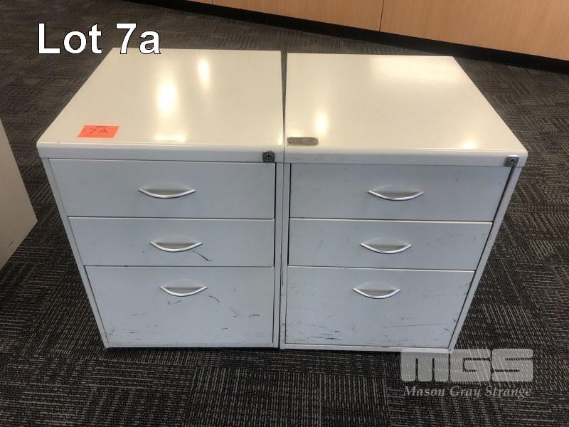 2 x GREY STEEL UNDER DESK MOBILES, 3 DRAWER