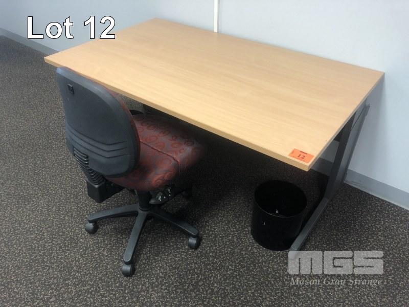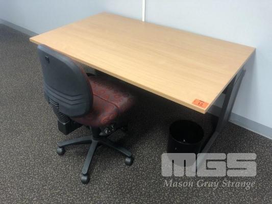 BEECH LAMINATE TIMBER DESK, STEEL FRAME, 860 x 1500mm,