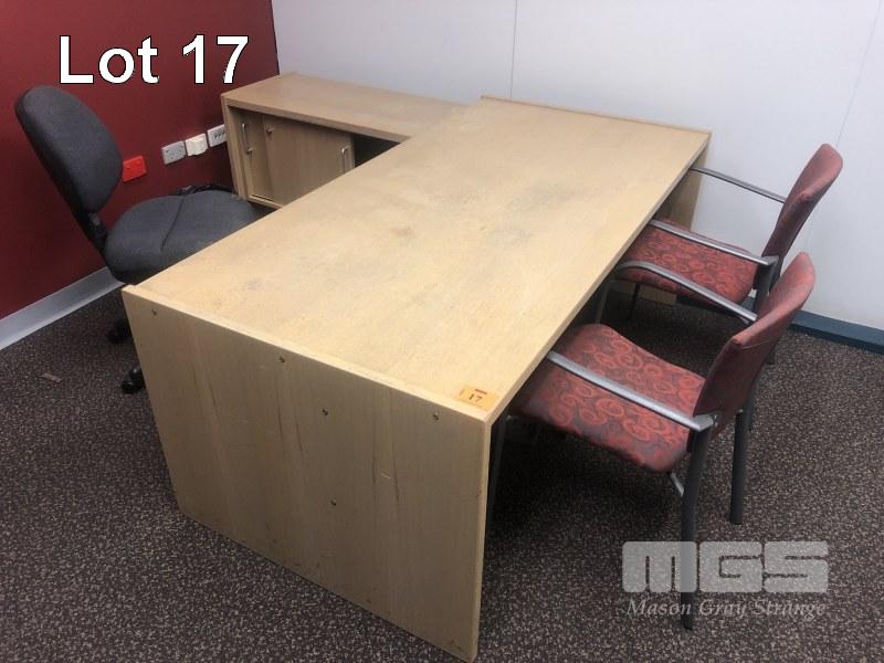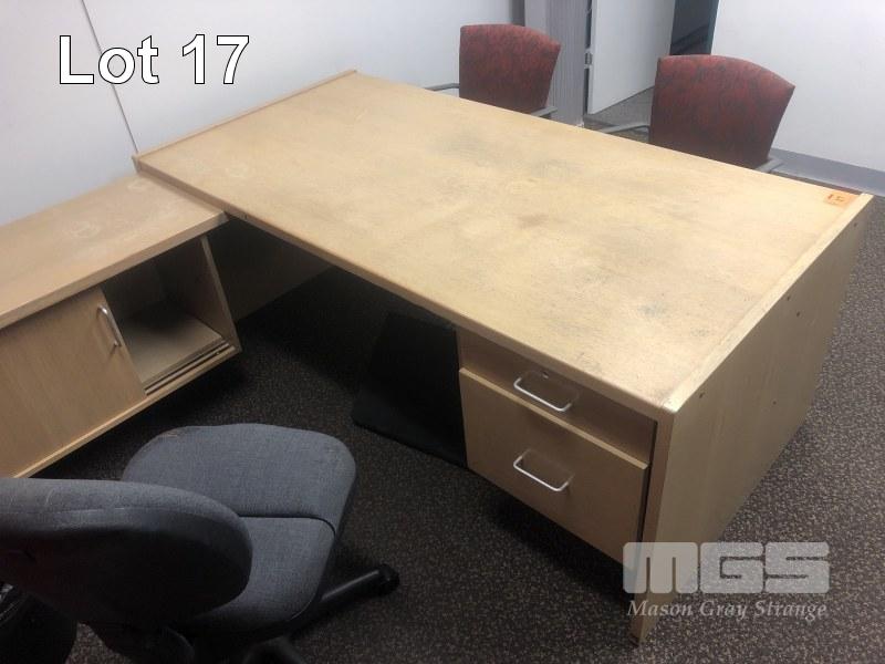TIMBER DESK WITH RETURN, 2 DRAWER, 1800 x 1850mm,