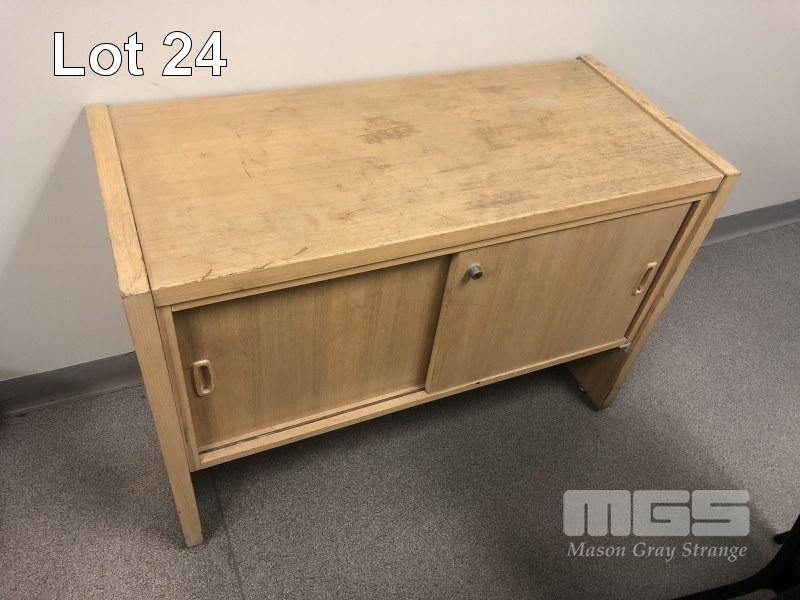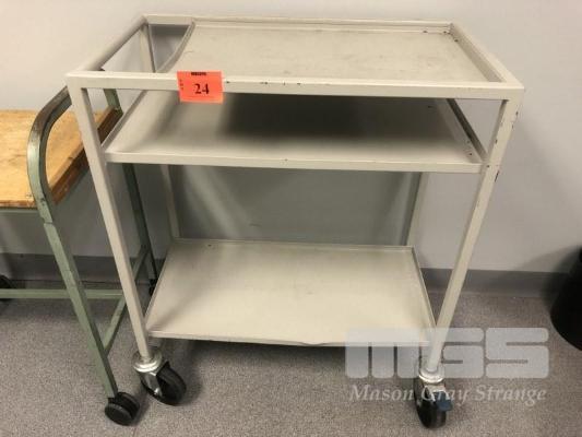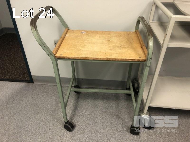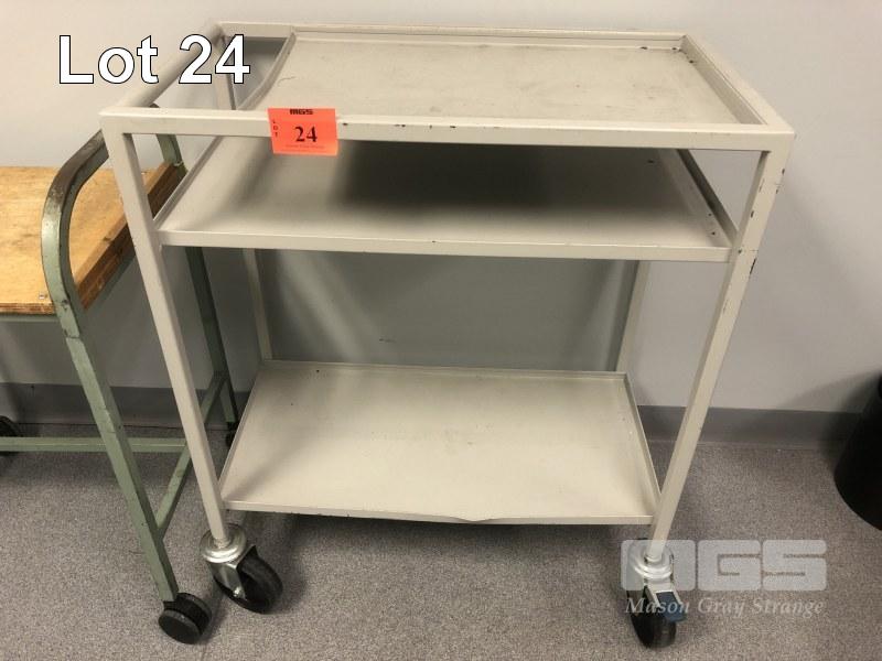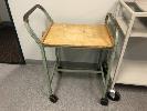 2 x STEEL LUNCH TROLLEYS 730 x 400mm 380 x 530mm & TIMBER CREDENZA 1000 x 450mm