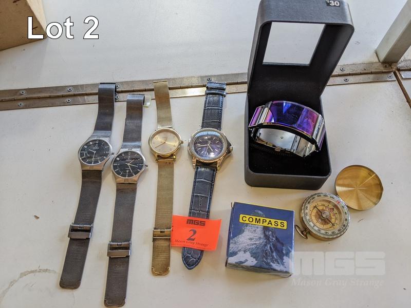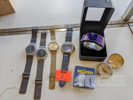 5 x ASSORTED GENTS WRISTWATCHES, TIMEX TERNER, OBAHU, ETC & COMPASS