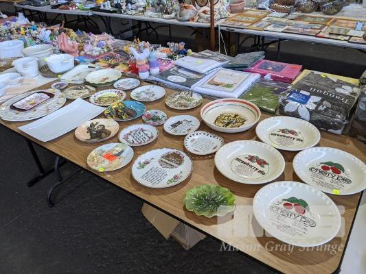ASSORTED DISPLAY PLATES, BOWLS, FLATWARE, ETC