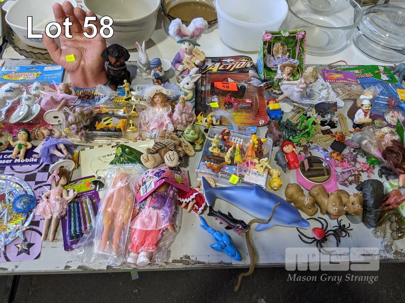 ASSORTED ORNAMENTS & TOYS, CARS, ANIMALS, DOLLS, FAIRIES