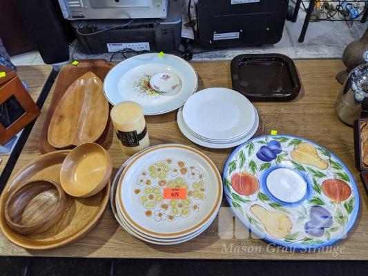 ASSORTED SERVINGWARE, WOODEN BOWLS, PLATTERS ETC