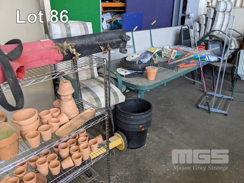 ALUMINIUM FRAME 9 PIECE OUTDOOR SETTING INC RECTANGULAR GLASS TOP TABLE, 6 x ARM CHAIRS, GARDEN SUPPLIES, STACKABLE CHAIRS, SHELF UNIT & CLOTHES RACK