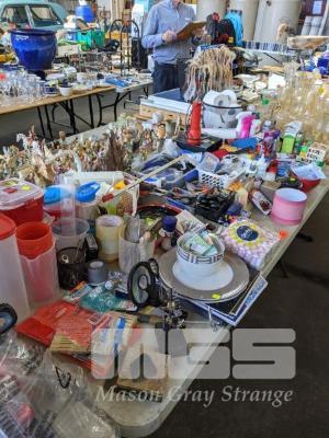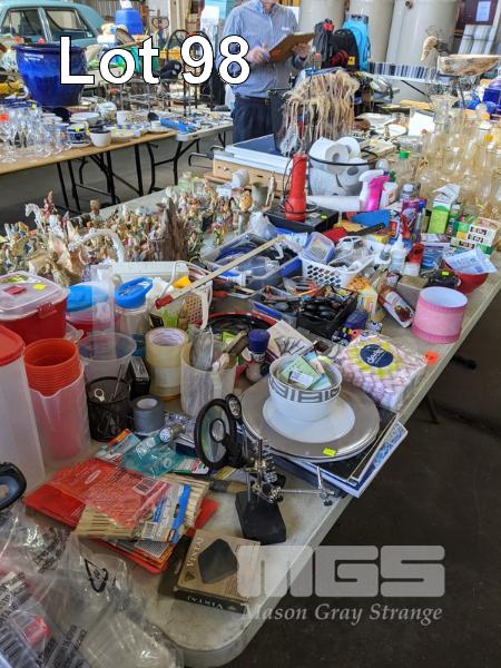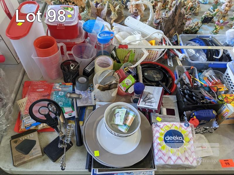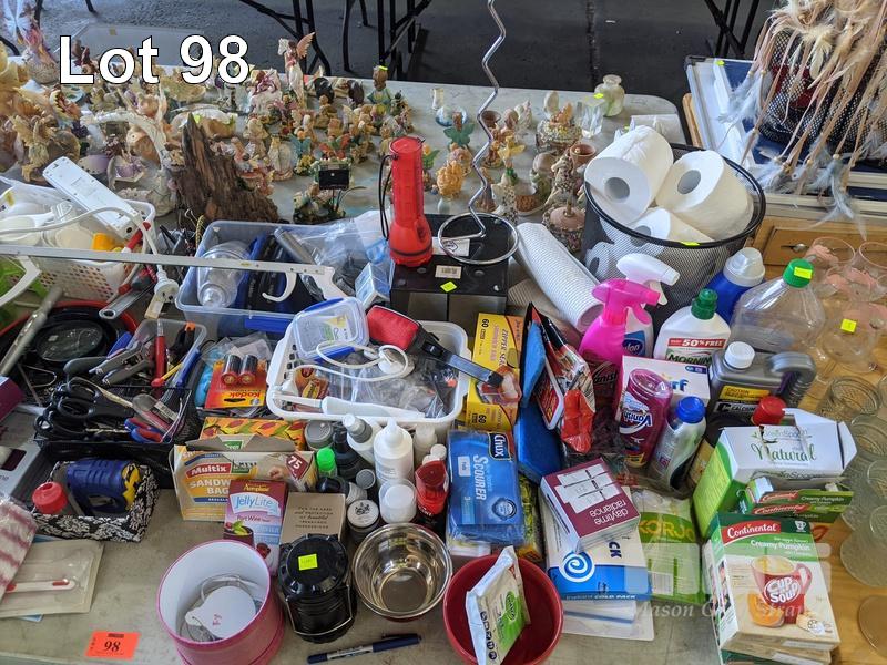ASSORTED HOMEWARES, STATIONERY, BOWLS, MAGNIFIER, CLEANING CHEMICALS & FOOD STUFF
