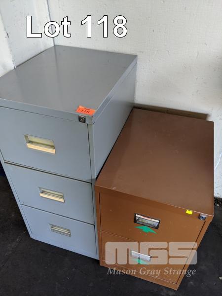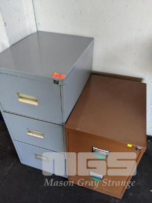 2 X STEEL FILING CABINETS 2 & 3 DRAWER, BROWN & GREY