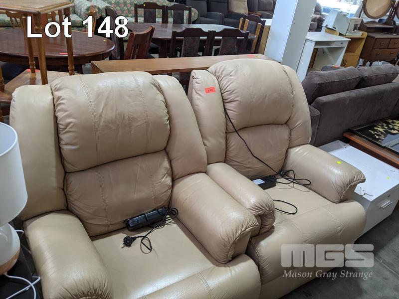 PAIR OF BEIGE LEATHER LIFT CHAIRS