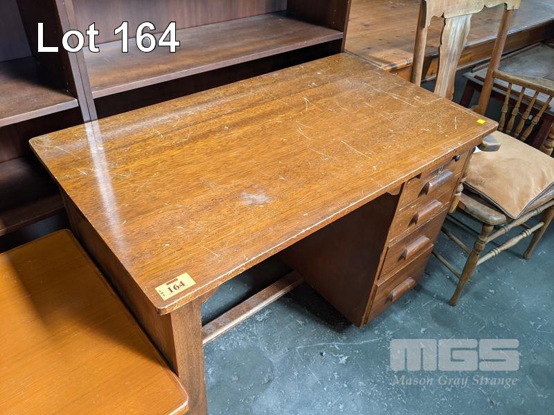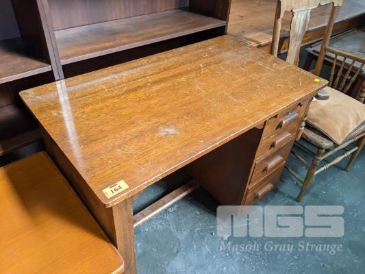 MID CENTURY TIMBER DESK, 4 DRAWER
