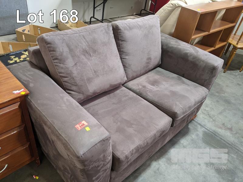 BROWN MICROFIBRE SOFA LOUNGE, 2 SEATER
