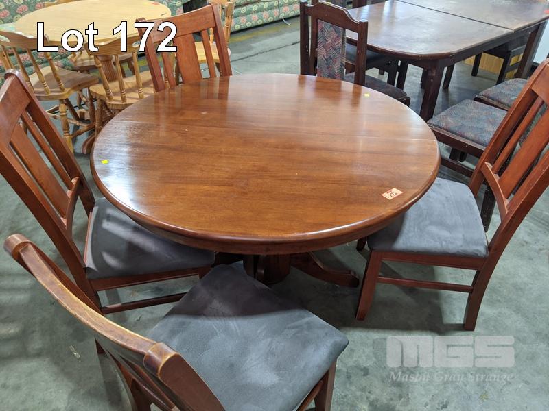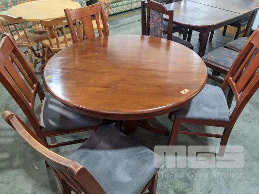 TIMBER 5 PIECE DINING SUITE INC ROUND EXTENSION TABLE, SINGLE PEDESTAL & 4 x DINING CHAIRS